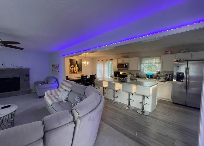 **Pocono Escape - Modern & Cozy Villa** offers a refreshing retreat in the picturesque Pocono Mountains, where the tranquility of nature meets contemporary comforts. This elegant establishment provides an ideal balance for both relaxation and adventure, making it the perfect destination for families, couples, and solo travelers alike. Guests are welcomed into a world where stylish design combines seamlessly with cozy detailing, ensuring a memorable experience.